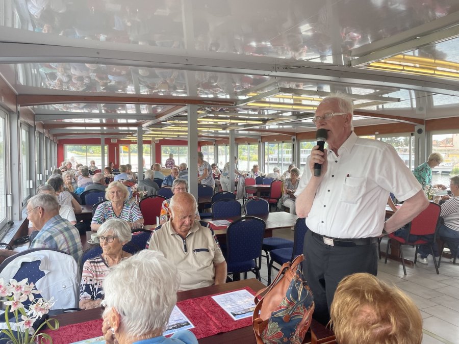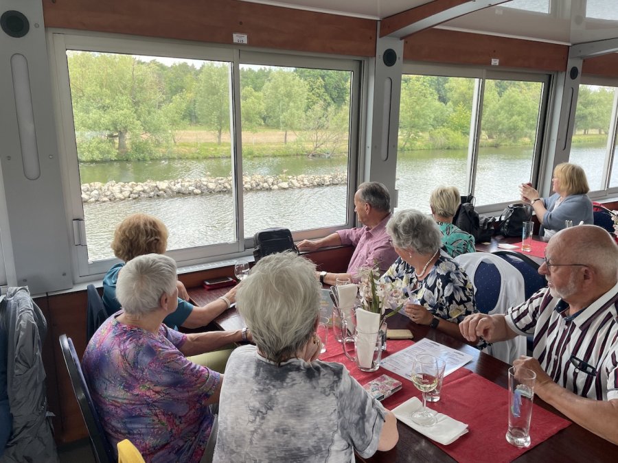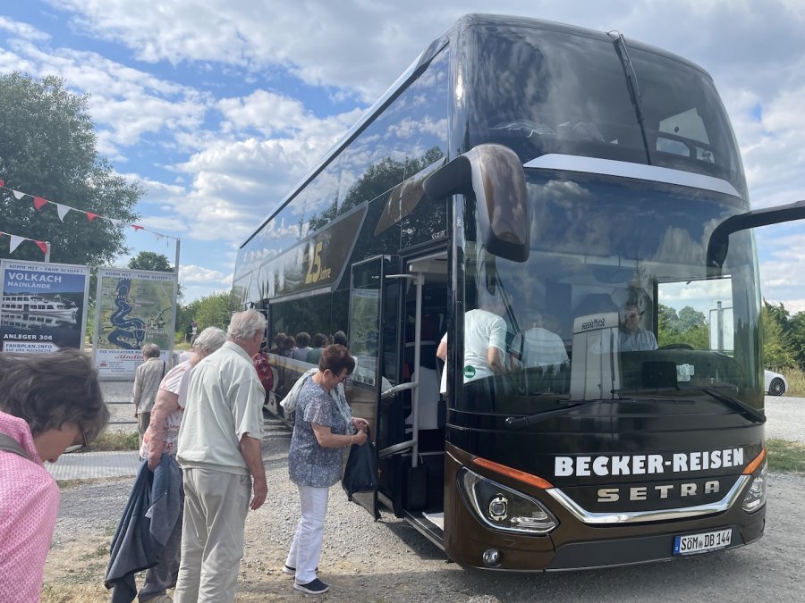 Eine gelungene Abwechslung war der Fußmarsch vom Anleger ins mittelalterliche Volkach. Die mittelalterliche Kleinstadt an der gleichnamigen Mainschleife lädt zum Verweilen und Genießen ein. Dem konnten wir leider nur bedingt nachkommen. An Bord der Undine erwarteten uns Kaffee und Kuchen, bevor wir uns zur Rückfahrt wieder im Doppelstockbus zusammenfanden und Christian uns alle froh und müde nach Hause brachte.