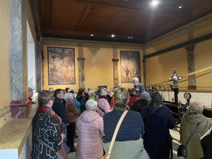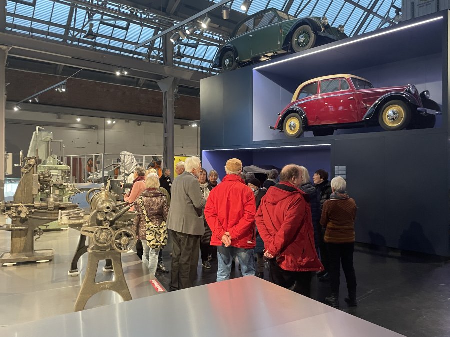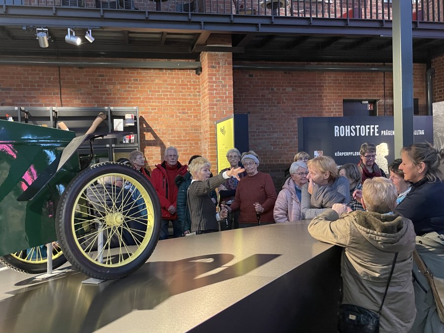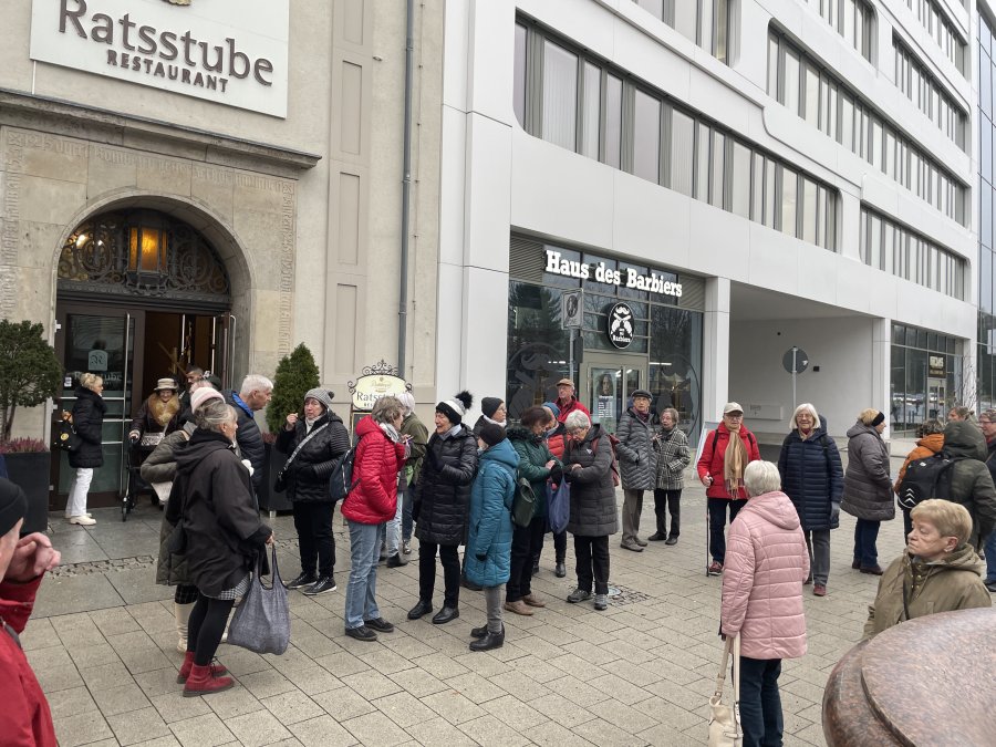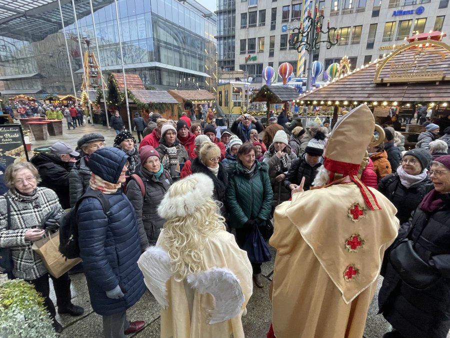 Erster Halt war das Industriemuseum – kurz an der Einfahrt vorbei, aber kein Problem, an der nächsten Ampel konnten wir direkt wenden. Auf geteilt in zwei Gruppen wurden wir durch das Museum geführt und unsere Mitreisenden entdeckten Stücke von früher, die ihnen sehr vertraut waren – Schreibmaschinen, Automodelle, Nähmaschinen und Kaffeefilter. Viel zu schnell verging die Zeit und schon hieß es weiter zum Mittagessen in die Ratsstube. Selten klappe ein Service so fließend und zügig, innerhalb von 20 Minuten hatten alle ihr Hauptgericht vor sich und keine 40 Minuten später die Nachspeise, die es diesmal inklusive gab – lecker war alles auch noch. Im Anschluss erwarteten uns Engel und Nikolaus für eine Stadtführung. Sie zeigten uns ihr Chemnitz und wussten einigen Interessantes zu erzählen. Nach den Führungen blieb noch Zeit den Weihnachtsmarkt zu entdecken, einen Glühwein zu trinken, sich in ein Café zurückzuziehen oder einfach nur durch die Straßen zu bummeln. Pünktlich waren alle am Treffpunkt und so konnte ein schöner Tag zu Ende gehen.