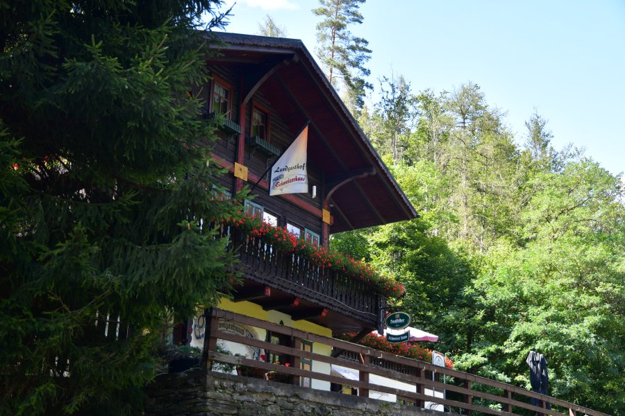 Nach etwa einer Stunde wurde gewechselt und dazwischen die Aussicht genossen. Nur wenige Kilometer entfernt gab es das Mittagsmahl in der Traditionsgaststätte Schweizerhaus. Empfangen von der Grande Dame des Hauses, konnte auf der Terrasse oder im Gastraum Platz genommen werden. Obwohl als Seniorenportionen deklariert, waren die Teller üppig gefüllt und geschmeckt hat es auch sehr gut, sodass Resümee der Mitesser.