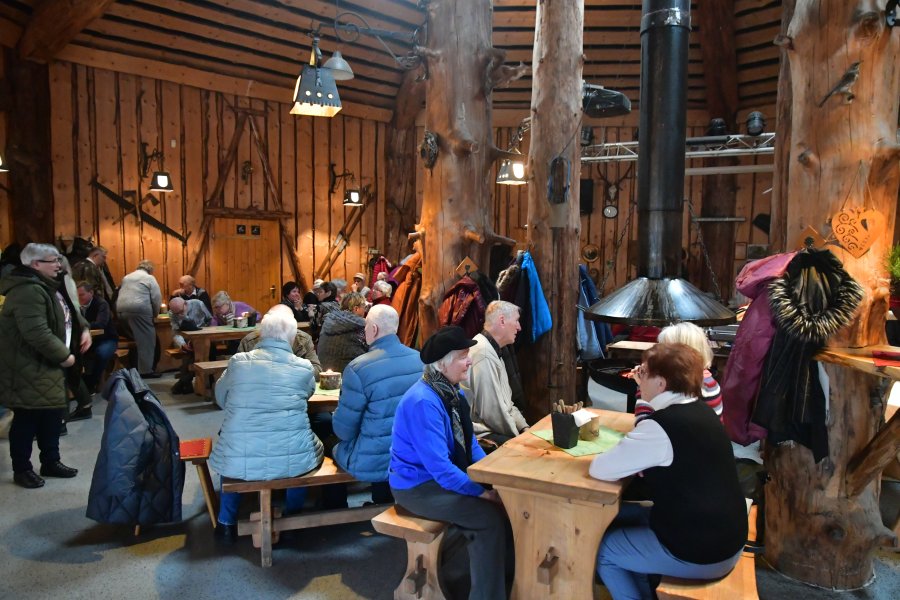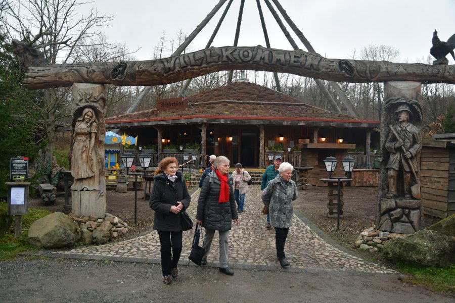 Die Zahl der interessierten WGM-Mieter war so groß, dass wieder Beckers Doppelstockbus zum Einsatz kam, um einen fröhlichen Haufen zu kutschieren. Christian, der sympathische Buslenker übernahm an den vorgegebenen Sammelstellen 67 Reisegäste und vier Rollatoren, um mit dieser Fracht deren erstes Ziel, das Stemberghaus, anzusteuern. Da dazwischen zwei größere Umleitungen zu bewältigen waren, wurde die Tour durch eine Rundfahrt im Harzvorland und eine kleine Harzrundreise ergänzt. Landschaft und Orte, die sonst selten von größeren Touristenströmen erreicht werden, zeigten sich sogar bei unfreundlichem Dezemberwetter besuchenswert. Den Reisegästen hat es gefallen, auch wenn die damit verbundene einstündige Verspätung beim Eintreffen in der Harzköhlerei Stemberghaus das Aufsuchen einer bestimmten Örtlichkeit zwingend erforderlich machte und sich deshalb eine längere Schlange bildete.