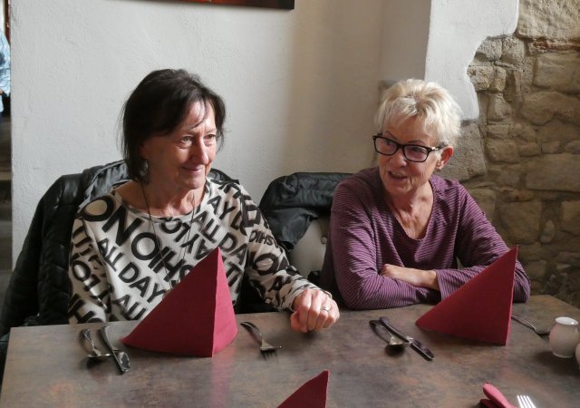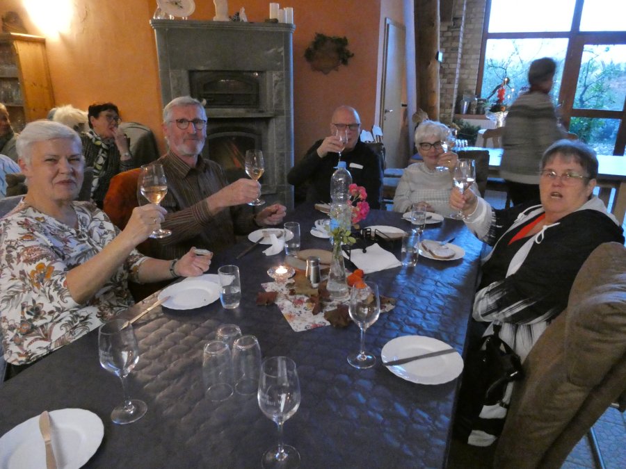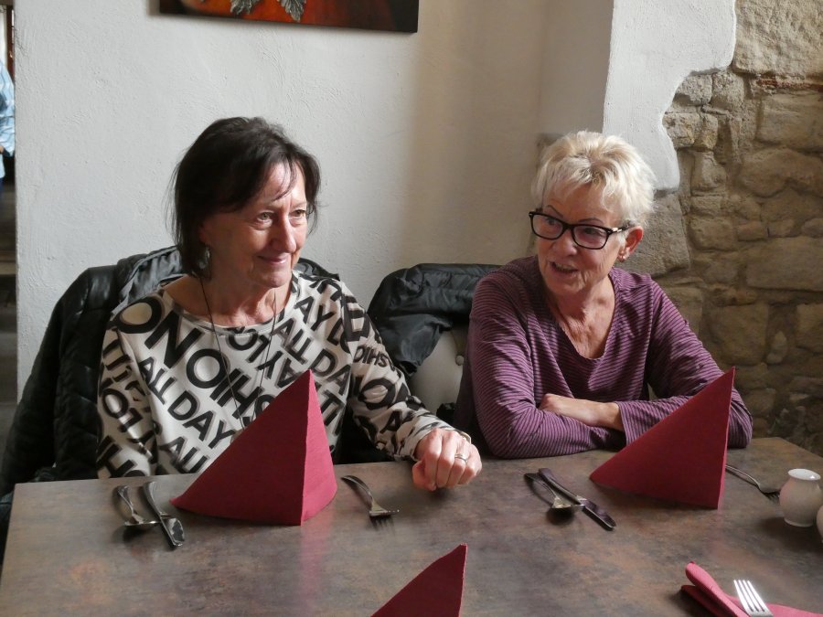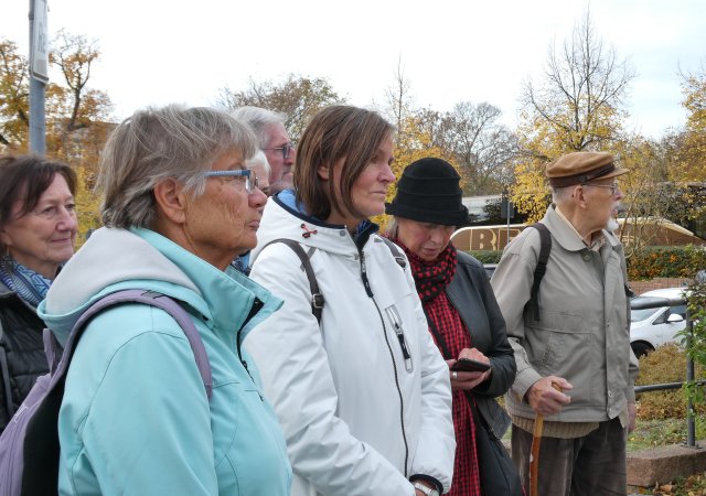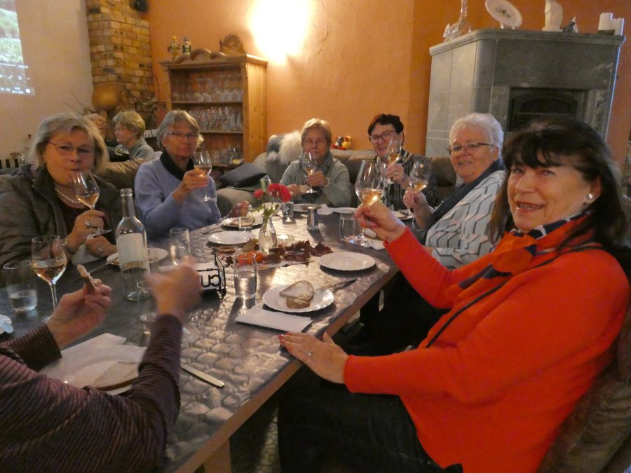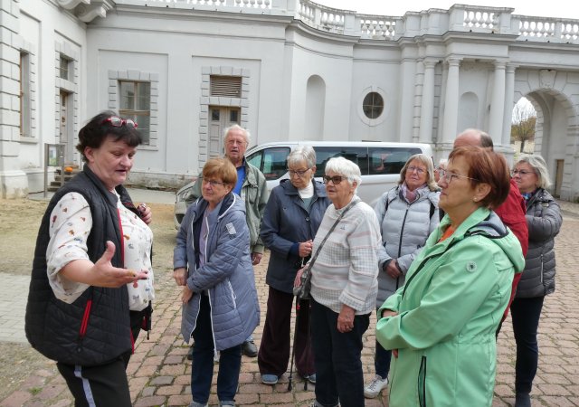 Denn nur wenige Kilometer weiter, in Merseburg, standen zwei Gästeführer bereit, um einen Teil von ihrem Wissen zur Geschichte von Merseburg preiszugeben. Die Runde (bitte nicht wörtlich nehmen) um Renaissanceschloss und Dom war nicht groß, doch gab es fast an jeder Ecke viel zu erzählen. Sich alles zu merken, war eigentlich unmöglich, aber es war ein sehr unterhaltsamer Nachmittag an einem spätherbstlichen Sonnentag. Bis nach Höhnstedt zur Weinprobe war es eine Fahrt von 45 Minuten und die Vorfreude der Businsassen wuchs mit jedem Kilometer. Frau Hoffmann, die engagierte Winzerin, erzählte von ihrem Tun und ihrer Familie, ohne deren gemeinsames Wirken das Führen eines Weingutes nicht möglich wäre. So nebenbei stellte sie ihre Hoffmannstropfen vor und füllte damit die Gläser der Weintester. Wie schon bei früheren Tests gab es Fettbrote, die im Magen die Grundlage schufen, dass die Übertragung von Alkoholprozenten ins Blut etwas ausgebremst wurde, denn Ziel der Veranstaltung war ja auch, dass nur leicht beschwingt am Ende die edlen Tropfen käuflich erworben werden. So war es auch diesmal. Man sagte auf Wiedersehen bis zum nächsten Mal und mit leichter Verspätung fuhr der Bus mit einer sehr glücklichen Besatzung nach Hause.