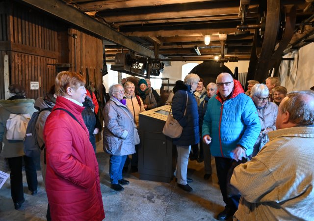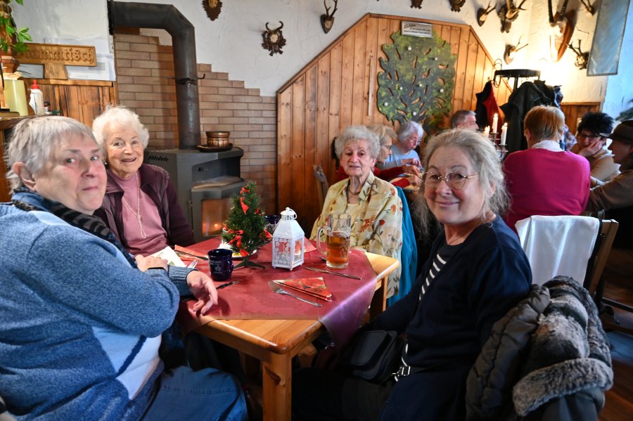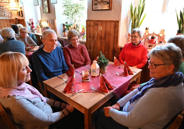 Zum Mittagessen fand man im Traditionsgasthaus „Zur Linde“ wieder zusammen und wer etwas durchgefroren war, begann die Mittagspause mit einem Glühwein. Der umtriebige Wirt und sein Sohn sorgten für schnellen Nachschub. Auch wenn es Gänsebraten gab, wählten doch die meisten Gäste den sächsischen Sauerbraten aus. Er war bisher auf allen unseren Erzgebirgsfahrten das kulinarische Highlight.