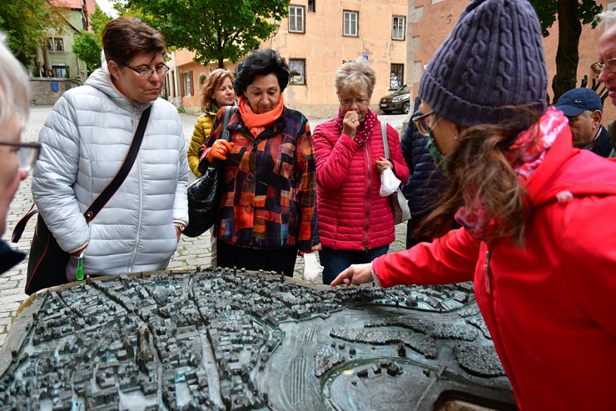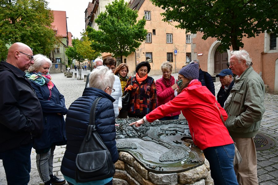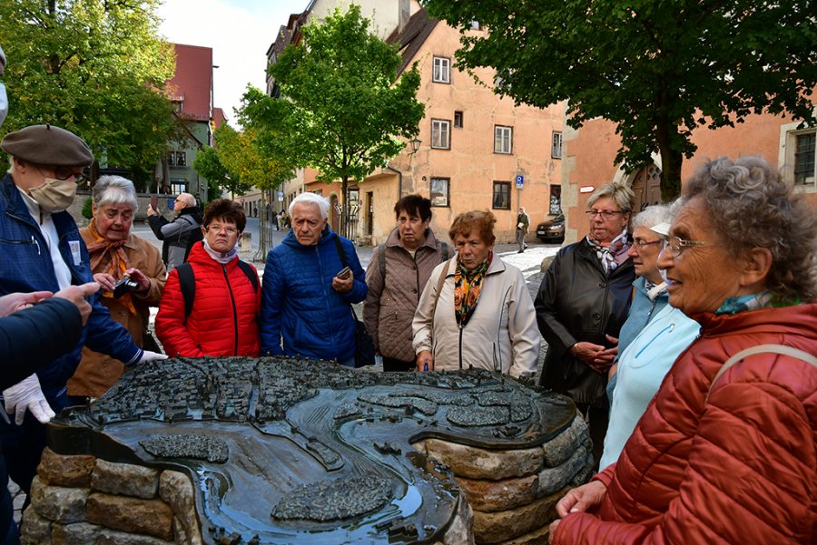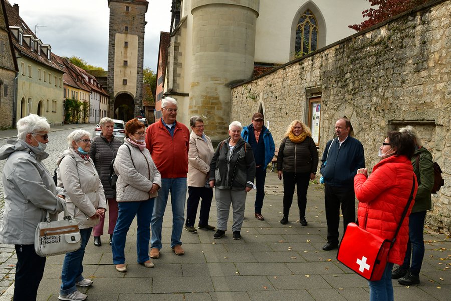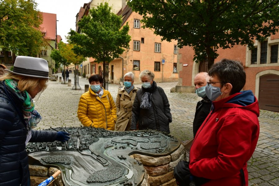 Einer der Tourismushotspots in Deutschland ist Rothenburg ob der Tauber, eine Kleinstadt, die jährlich von hunderttausenden Touristen aus nah und vor allem aus Asien besucht wird. Coronabedingt war die Besucherschar am 6. und 8. Oktober sehr übersichtlich, so dass die mittelalterliche Stadt ohne Menschenaufläufe in aller Ruhe besichtigt werden konnte. Dazu waren pro Fahrt je drei Gästeführerinnen gebucht, die ihren kleinen Gruppen die Altstadt zeigten.