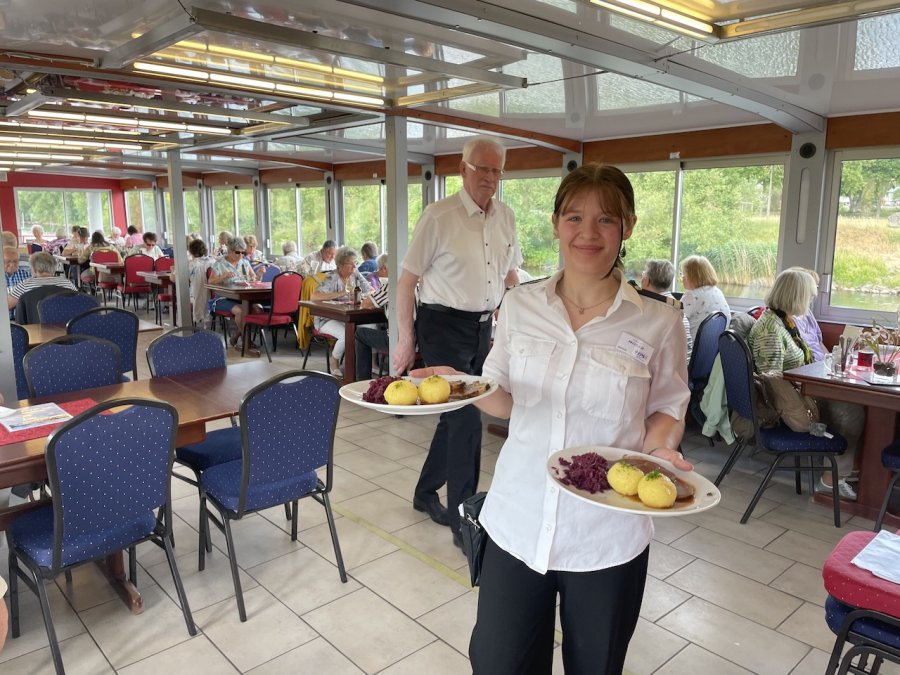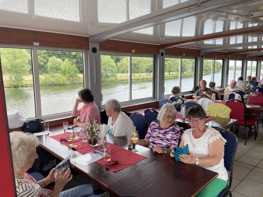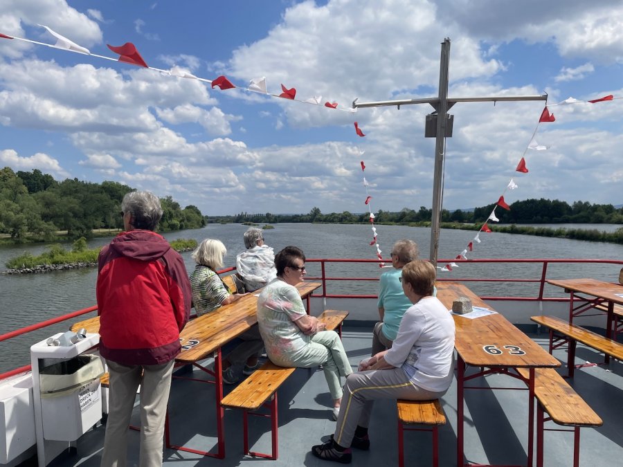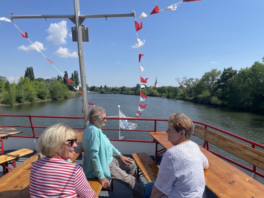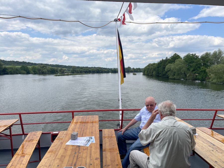Eine gelungene Abwechslung war der Fußmarsch vom Anleger ins mittelalterliche Volkach. Die mittelalterliche Kleinstadt an der gleichnamigen Mainschleife lädt zum Verweilen und Genießen ein. Dem konnten wir leider nur bedingt nachkommen. An Bord der Undine erwarteten uns Kaffee und Kuchen, bevor wir uns zur Rückfahrt wieder im Doppelstockbus zusammenfanden und Christian uns alle froh und müde nach Hause brachte.
