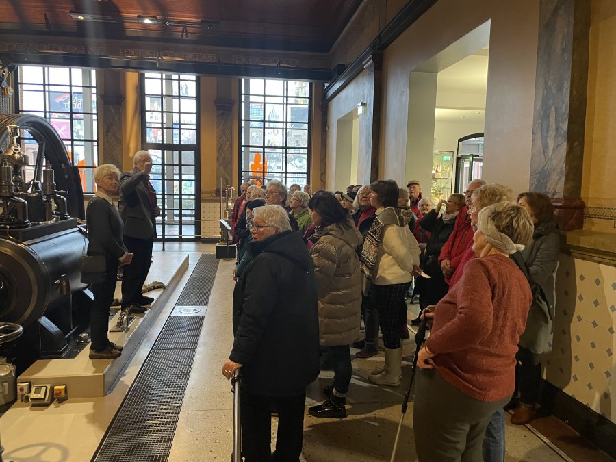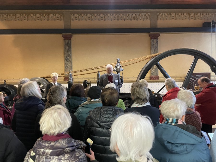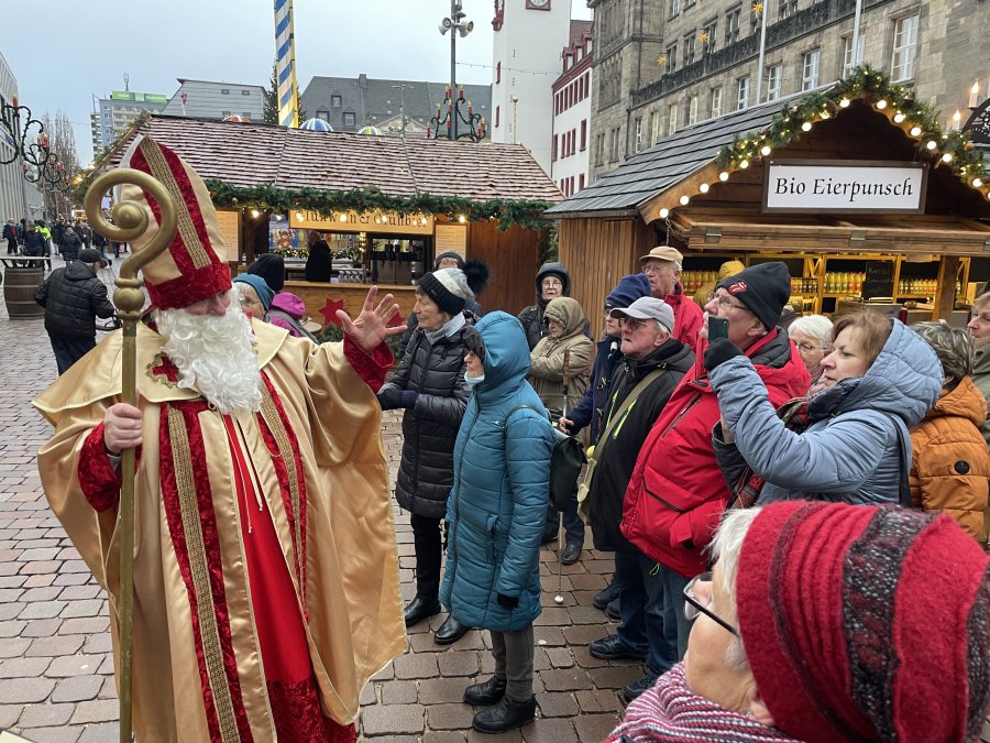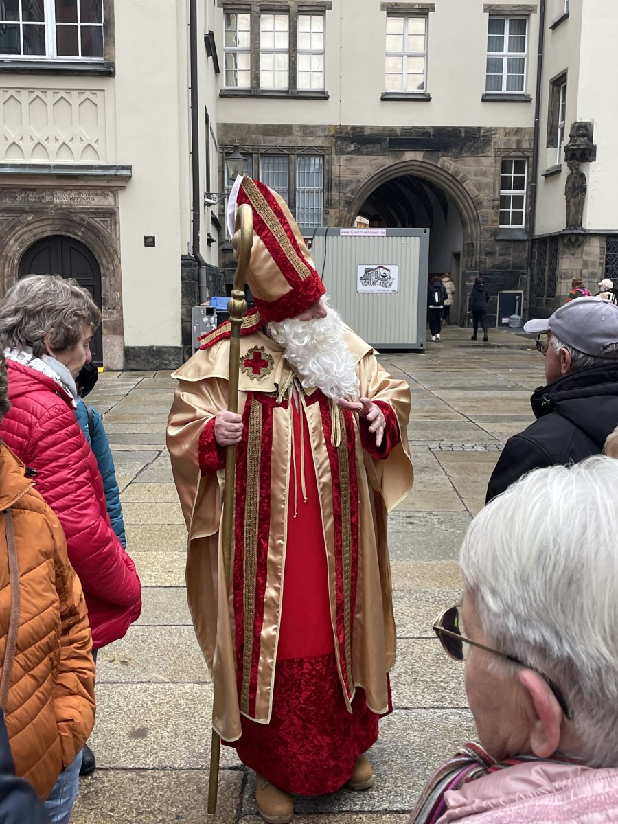 Erster Halt war das Industriemuseum – kurz an der Einfahrt vorbei, aber kein Problem, an der nächsten Ampel konnten wir direkt wenden. Auf geteilt in zwei Gruppen wurden wir durch das Museum geführt und unsere Mitreisenden entdeckten Stücke von früher, die ihnen sehr vertraut waren – Schreibmaschinen, Automodelle, Nähmaschinen und Kaffeefilter. Viel zu schnell verging die Zeit und schon hieß es weiter zum Mittagessen in die Ratsstube. Selten klappe ein Service so fließend und zügig, innerhalb von 20 Minuten hatten alle ihr Hauptgericht vor sich und keine 40 Minuten später die Nachspeise, die es diesmal inklusive gab – lecker war alles auch noch. Im Anschluss erwarteten uns Engel und Nikolaus für eine Stadtführung. Sie zeigten uns ihr Chemnitz und wussten einigen Interessantes zu erzählen. Nach den Führungen blieb noch Zeit den Weihnachtsmarkt zu entdecken, einen Glühwein zu trinken, sich in ein Café zurückzuziehen oder einfach nur durch die Straßen zu bummeln. Pünktlich waren alle am Treffpunkt und so konnte ein schöner Tag zu Ende gehen.