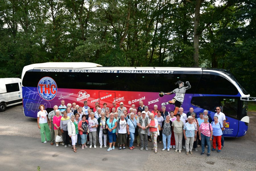 Es ist immer eine Freude, mit der Mühlhäuser Reisegruppe zu einer Tagestour aufzubrechen. Allen Teilnehmern ist anzumerken, diese Fahrten sind kleine Höhepunkte in ihrer Jahresplanung und dementsprechend ist die Stimmung schon beim Einstieg. So war es auch am 21. August. Da das Reisegefährt der offizielle Reisebus der Bundesligamannschaft vom THC war, inspirierte es alle Reisegäste zu sportlichen Höchstleistungen und der Ein- und Ausstieg erfolgte beinah alarmmäßig.