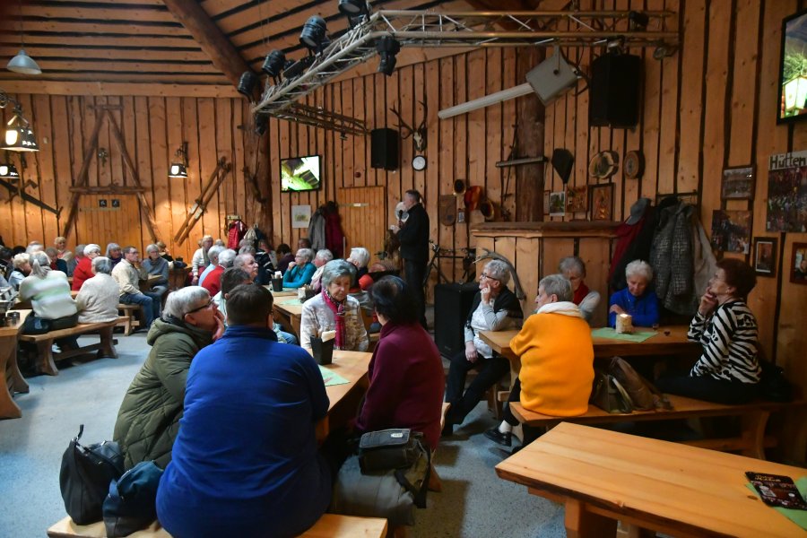 Die Zahl der interessierten WGM-Mieter war so groß, dass wieder Beckers Doppelstockbus zum Einsatz kam, um einen fröhlichen Haufen zu kutschieren. Christian, der sympathische Buslenker übernahm an den vorgegebenen Sammelstellen 67 Reisegäste und vier Rollatoren, um mit dieser Fracht deren erstes Ziel, das Stemberghaus, anzusteuern. Da dazwischen zwei größere Umleitungen zu bewältigen waren, wurde die Tour durch eine Rundfahrt im Harzvorland und eine kleine Harzrundreise ergänzt. Landschaft und Orte, die sonst selten von größeren Touristenströmen erreicht werden, zeigten sich sogar bei unfreundlichem Dezemberwetter besuchenswert. Den Reisegästen hat es gefallen, auch wenn die damit verbundene einstündige Verspätung beim Eintreffen in der Harzköhlerei Stemberghaus das Aufsuchen einer bestimmten Örtlichkeit zwingend erforderlich machte und sich deshalb eine längere Schlange bildete.