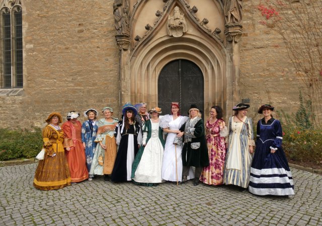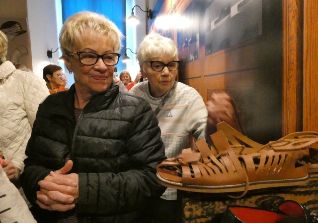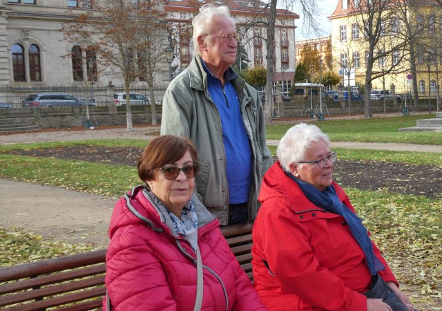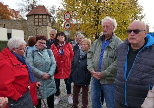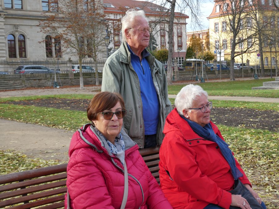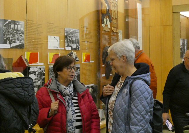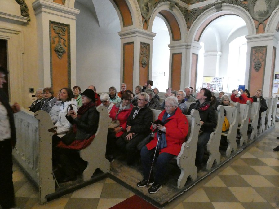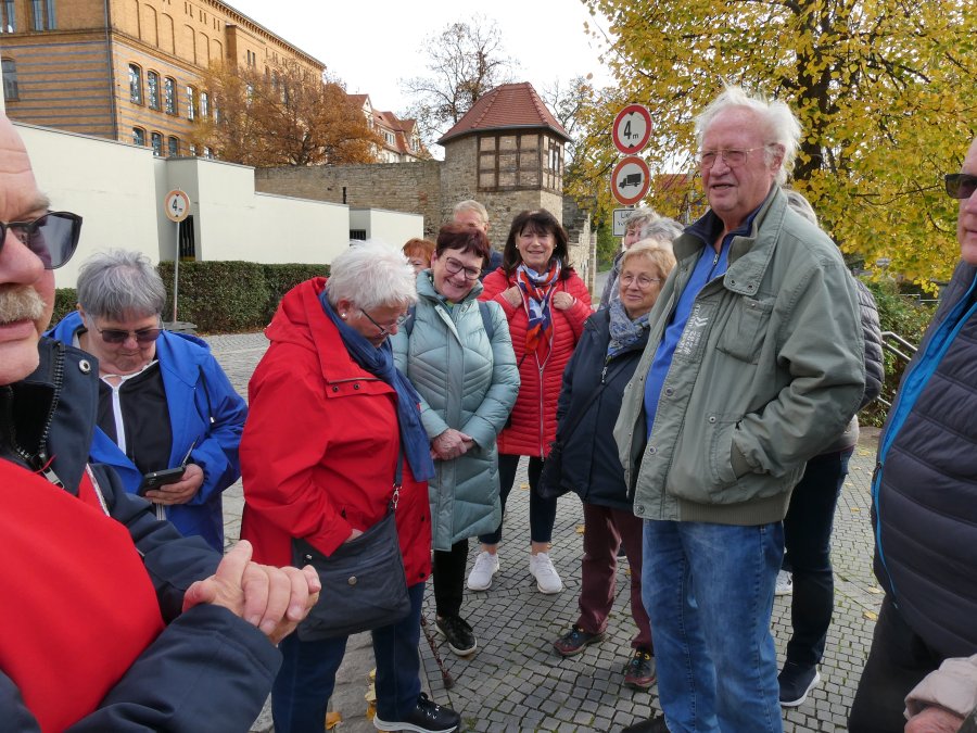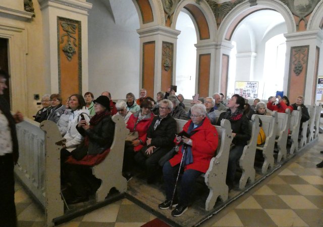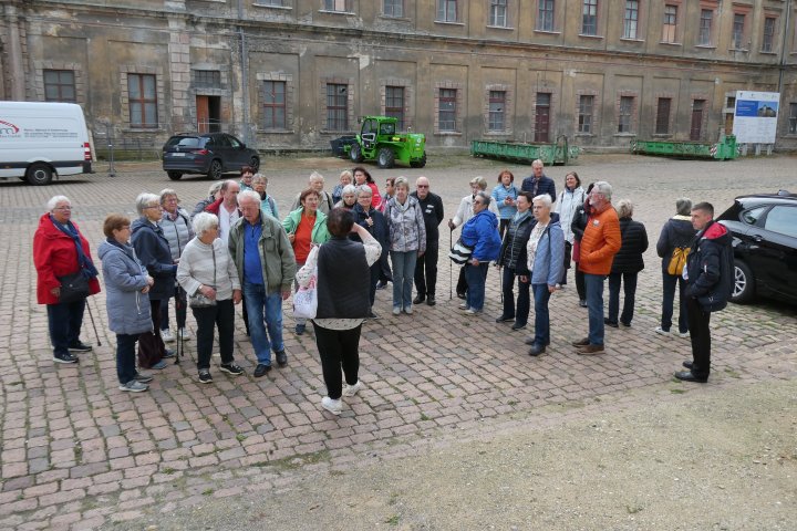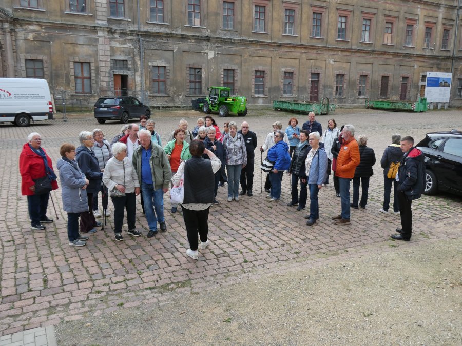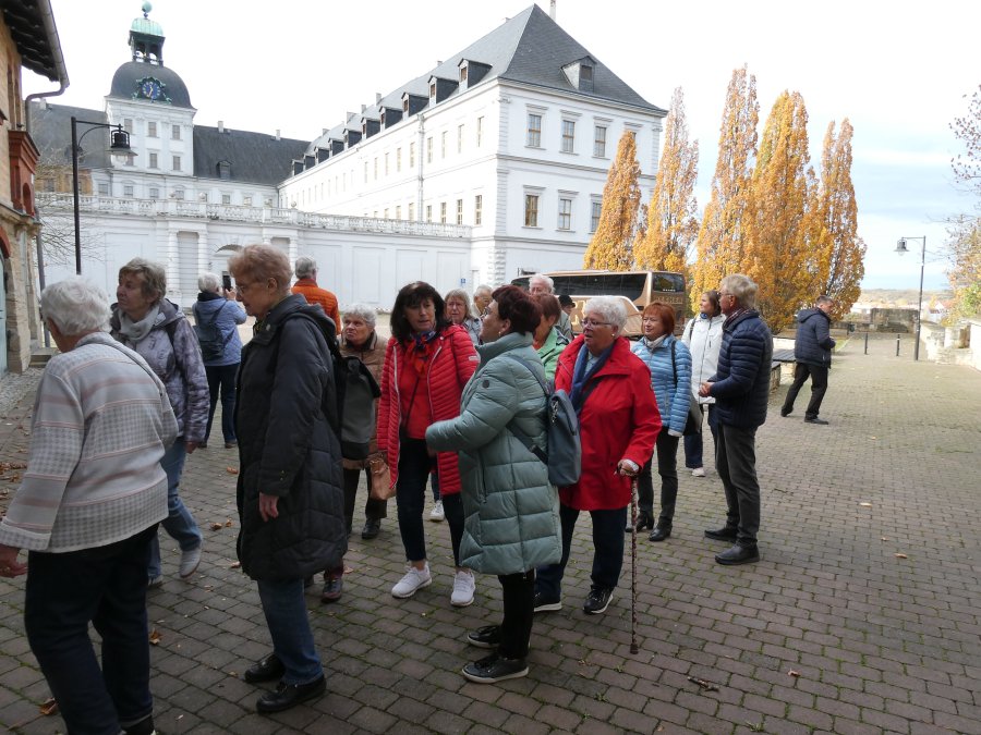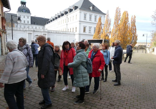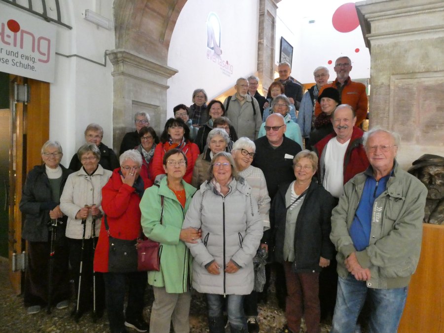 Der Wetterbericht hatte sich nicht geirrt und so war die herbstliche Ausfahrt im Beckerbus schon ein Erlebnis. Erste Station war das Weißenfelser Schloss. Dort gibt es ein Schuhmuseum, denn die Stadt war über sehr viele Jahre ein Zentrum der Schuhindustrie mit fast 5.000 Beschäftigten. Die verloren mit der Wende ihre Arbeit und teilten das Schicksal derer, die auch in Erfurt einstmals Schuhe produzierten. Davon waren auch einige in der Reisegesellschaft unterwegs und so entwickelten sich schnell Fachgespräche mit der Gästeführerin. Leider war die Besuchszeit etwas begrenzt und so musste die persönliche Anprobe ausgefallener Exponate entfallen. Beeindruckend war auch ein Blick auf die „Elbkähne“ von Dirk Novitzki, der die Schuhgröße 54 hat und anderer bekannter Sportler. Auf dem Besichtigungsprogramm stand auch noch ein Besuch der barocken Schlosskapelle und als Zugabe der einer restaurierten Latrine in einem Nebengebäude. Zum Mittagessen wurde die Gesellschaft im Hotel Jägerhof erwartet. Herzlichen Dank an die Geschäftsführung, die es der Reisegruppe ermöglicht hat, Weißenfels, mit warmer Malzeit gestärkt und freundlich bedient, zu verlassen.