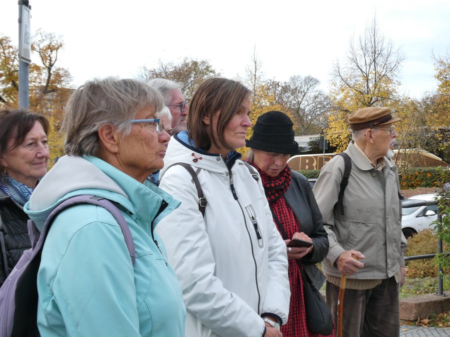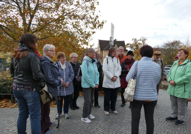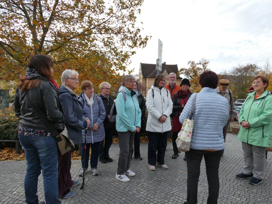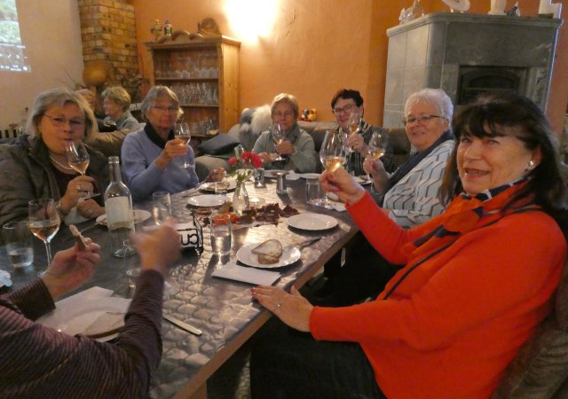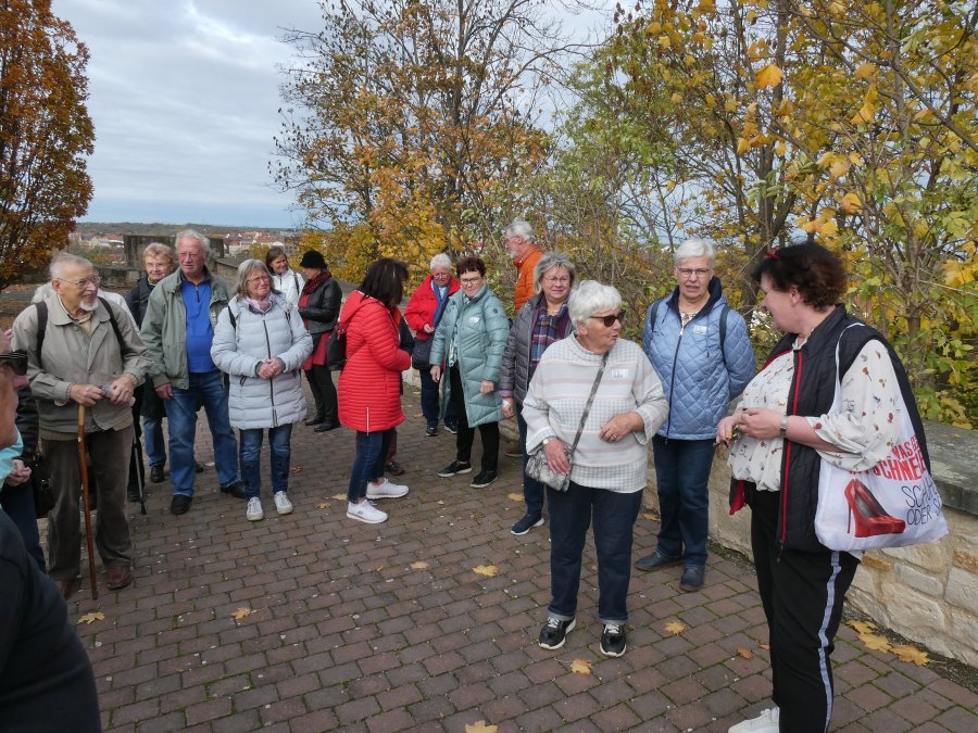 Denn nur wenige Kilometer weiter, in Merseburg, standen zwei Gästeführer bereit, um einen Teil von ihrem Wissen zur Geschichte von Merseburg preiszugeben. Die Runde (bitte nicht wörtlich nehmen) um Renaissanceschloss und Dom war nicht groß, doch gab es fast an jeder Ecke viel zu erzählen. Sich alles zu merken, war eigentlich unmöglich, aber es war ein sehr unterhaltsamer Nachmittag an einem spätherbstlichen Sonnentag. Bis nach Höhnstedt zur Weinprobe war es eine Fahrt von 45 Minuten und die Vorfreude der Businsassen wuchs mit jedem Kilometer. Frau Hoffmann, die engagierte Winzerin, erzählte von ihrem Tun und ihrer Familie, ohne deren gemeinsames Wirken das Führen eines Weingutes nicht möglich wäre. So nebenbei stellte sie ihre Hoffmannstropfen vor und füllte damit die Gläser der Weintester. Wie schon bei früheren Tests gab es Fettbrote, die im Magen die Grundlage schufen, dass die Übertragung von Alkoholprozenten ins Blut etwas ausgebremst wurde, denn Ziel der Veranstaltung war ja auch, dass nur leicht beschwingt am Ende die edlen Tropfen käuflich erworben werden. So war es auch diesmal. Man sagte auf Wiedersehen bis zum nächsten Mal und mit leichter Verspätung fuhr der Bus mit einer sehr glücklichen Besatzung nach Hause.