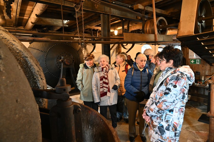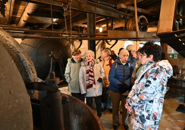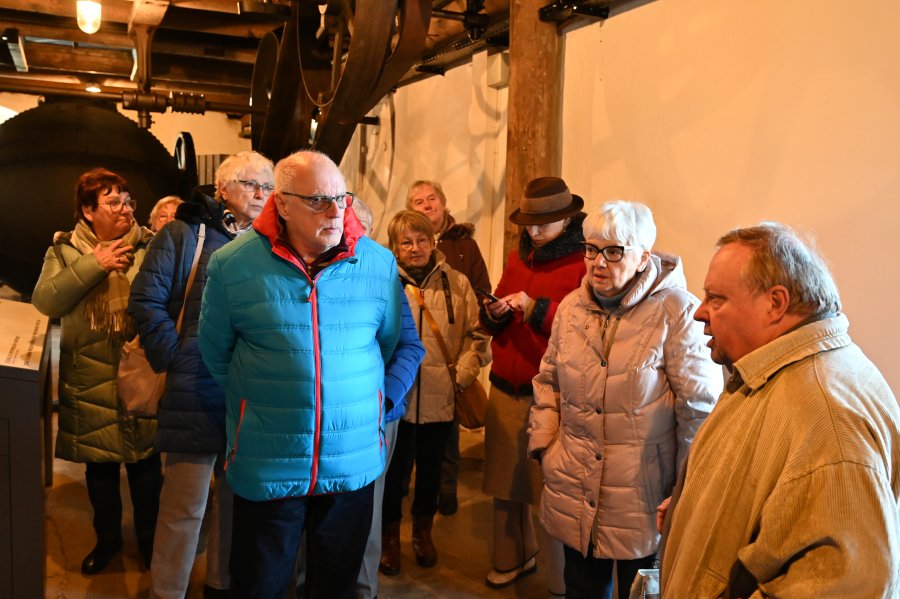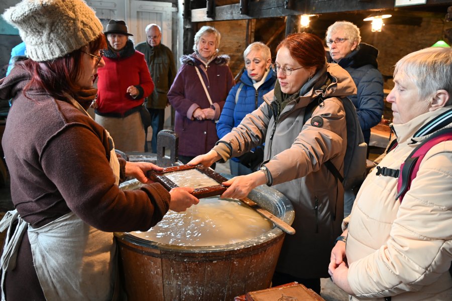 Doch zuerst ging die Fahrt nach Zwönitz, einem erzgebirgischen Kleinstädtchen, das in Erfurt kaum bekannt ist. Hier befindet sich allerdings eine historische Papiermühle, die besichtigt werden kann und in der interessierte Besucher selbst Papier auf traditionelle Art herstellen, bzw. schöpfen können. Auch wenn es in den Räumen a…kalt war, war der Besuch an diesem historischen Ort für alle ein Erlebnis und verbunden mit einem Wissensgewinn.
